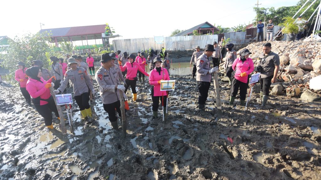 BANDA ACEH – Polda Aceh menginisiasi penanaman 10 ribu bibit mangrove di kawasan pesisir sebagai bagian dari program Green Policing atau Polisi Hijau. Kegiatan yang dipusatkan di Gampong Alue Naga, Kecamatan Syiah Kuala, Kota Banda Aceh ini menjadi langkah konkret Polri dalam memperkuat ketahanan ekologis sekaligus mendorong ketahanan ekonomi desa pesisir.
