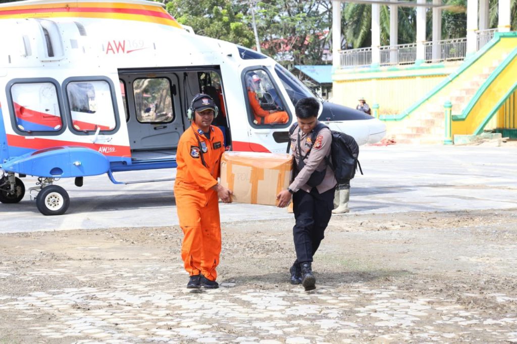 ACEH – Upaya bantuan kemanusiaan terus dilakukan Polri untuk mendukung penanganan korban bencana di wilayah Aceh Tamiang. Pada Jumat, 5 Desember 2025, satu unit helikopter AW169 (P-3303) diterbangkan dalam misi Dukungan Kemanusiaan, membawa total 348 kilogram logistik penting untuk masyarakat terdampak.