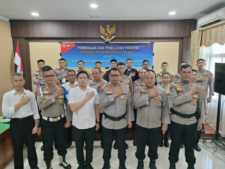 BENGKULU – Kepala Bidang Profesi dan Pengamanan (Bidpropam) Polda Bengkulu Kombes Pol. Sugeng Pujihartono, S.E., M.H., memimpin secara resmi kegiatan...