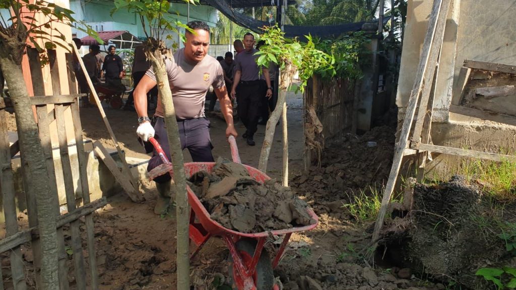 Bireuen — Kepolisian Resor Bireuen kembali menunjukkan kepeduliannya terhadap pemulihan fasilitas pendidikan pascabencana banjir dengan melaksanakan gotong royong pembersihan di TK Tgk Chik Makam, Desa Samuti Aman, Kecamatan Gandapura, Kabupaten Bireuen, Rabu (7/1/2026).