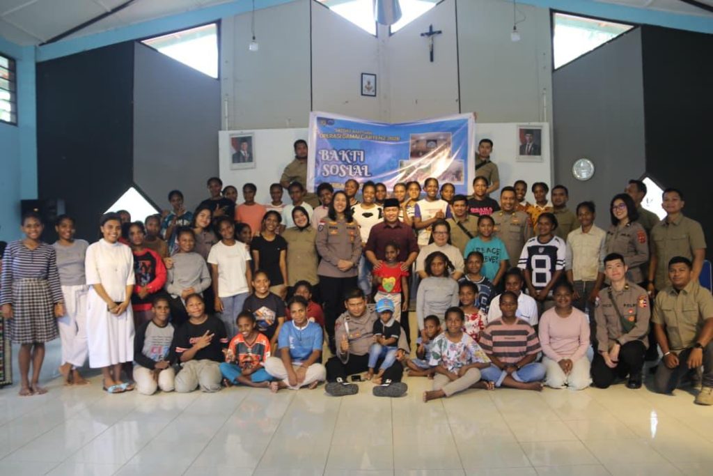 Kegiatan kemanusiaan tersebut merupakan bagian dari program kepedulian sosial Satgas Operasi Damai Cartenz 2026 yang dipimpin oleh Kepala Operasi Damai Cartenz 2026 Brigjen Pol. Dr. Faizal Ramadhani, S.Sos., S.I.K., M.H., yang dalam pelaksanaannya diwakili oleh Kepala Administrasi dan Manajemen Operasi (Kaminops) Damai Cartenz 2026 Kombes Pol. Hendrik Purwono. Kegiatan dimulai sekitar pukul 14.30 WIT dan berlangsung dalam suasana penuh keakraban.